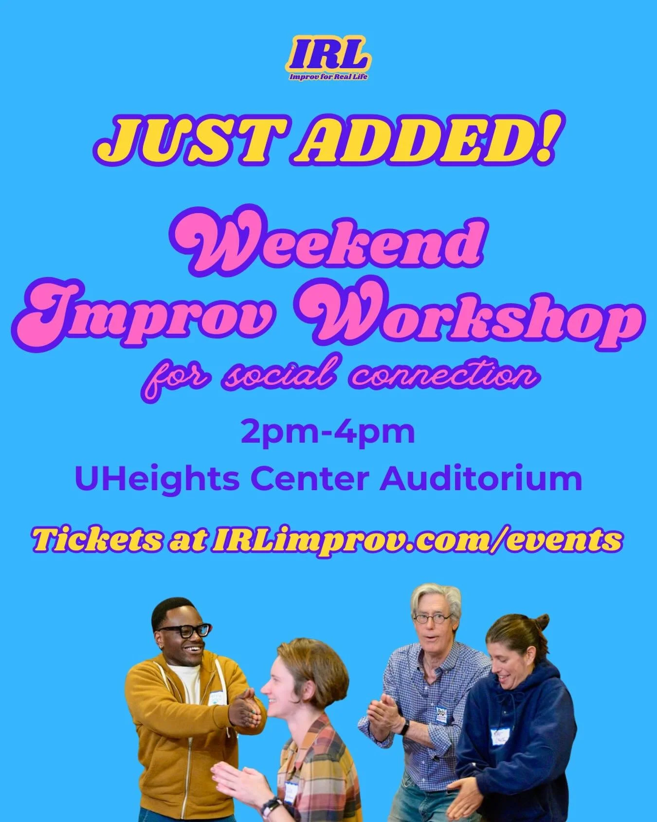 “The workshop at University Heights Center on July 17 was even better than what I expected. IRL Improv is wonderfully relaxed, open, and fun. And the best part is that the leaders, Saya and Abbie, structure the evening so that everybody can share about themselves and also feel safe.
