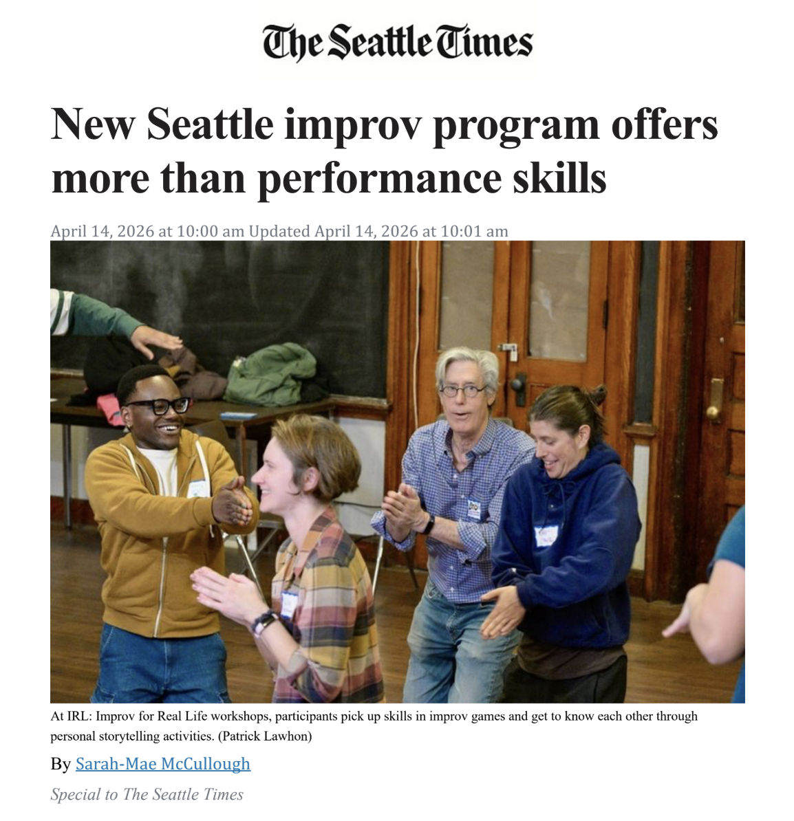 The Seattle Times recently did a deep dive on what Improv for Real Life is all about.